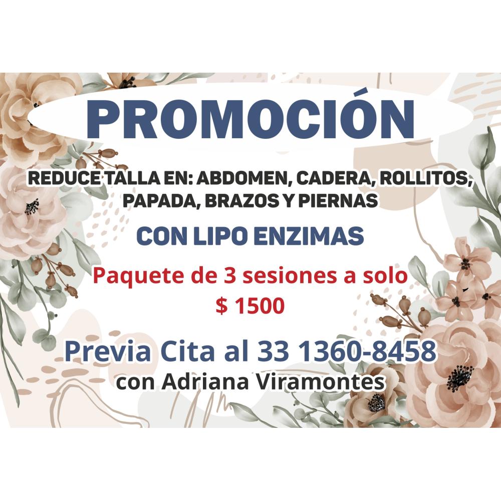 Aplicacion de enzimas para perder talla Necesitas perder unas tallas de mas? hazlo facilmente con aplicación de enzimas. Paquetes de 3 sesiones, aplicación rapida, sencilla, resultados comprobados. Servicio a domicilio dentro de Periferico (sujeto a accesibilidad) Nos Ubicamos a un lado de Jardines de la Paz. -Zona Rio Nilo en Guadalajara- tel. 3 3 1 3 6 0 8 4 5 8