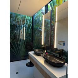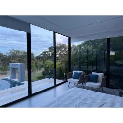 ventanales en vidrio templado de piso a techo, muchos frutales exóticos, algunos en produccion, sistema de riego wifi